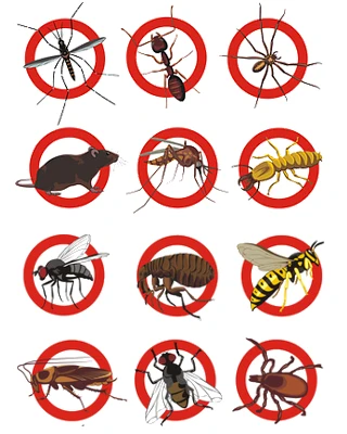 - Baratas, pulgas, ratos, moscas, formigas, mosquitos, melgas, carraças, ácaros, térmitas, vespas, traças, percevejos, peixinhos de prata, caruncho, gorgulho, lagarta do pinheiro (processionária) e todos os outros tipos de desinsectizações.